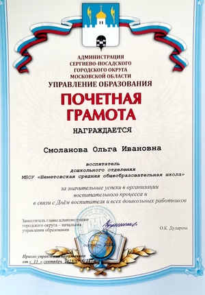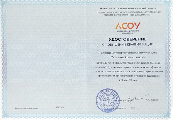 - "Воспитательная деятельность в дошкольной образовательной организации: от проектирования к успешной реализации ". АСОУ .2021 год